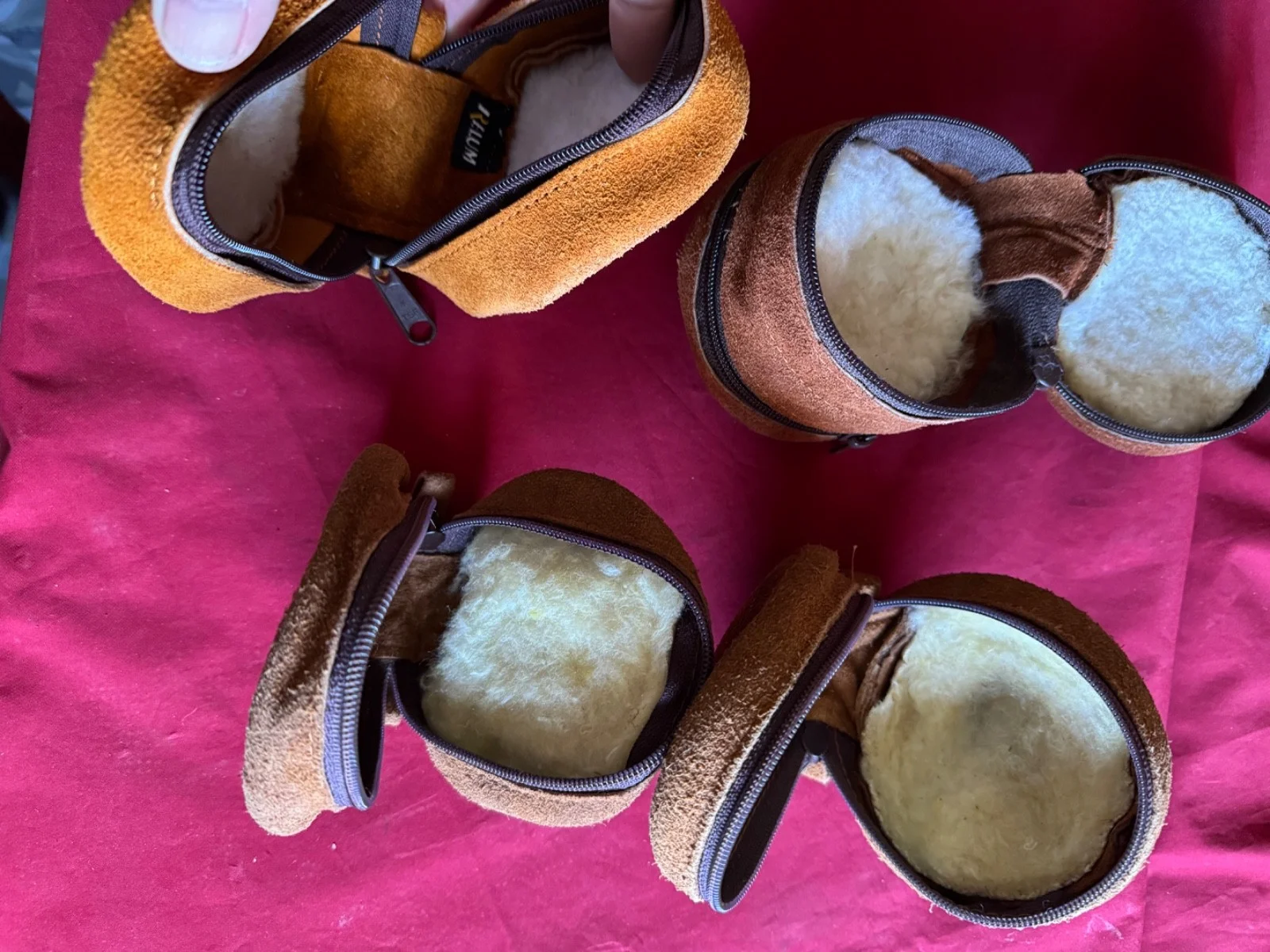 4 Suede & Sheepskin Fly Reel Cases.