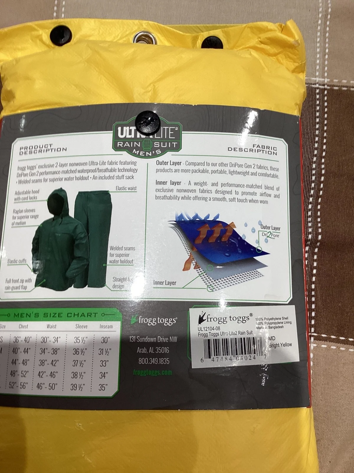 FROGG TOGGS Men's Ultra-Lite 2 All-Sport Waterproof Breathable Rain Suit yellow