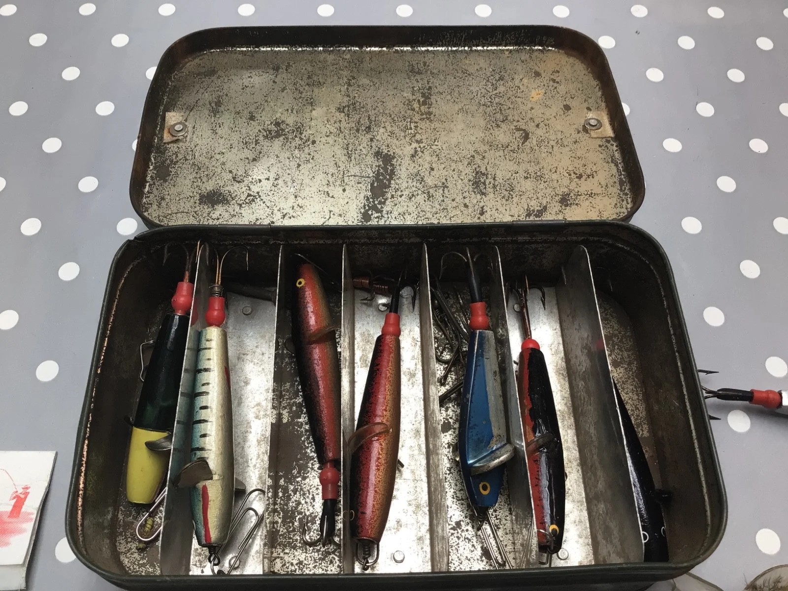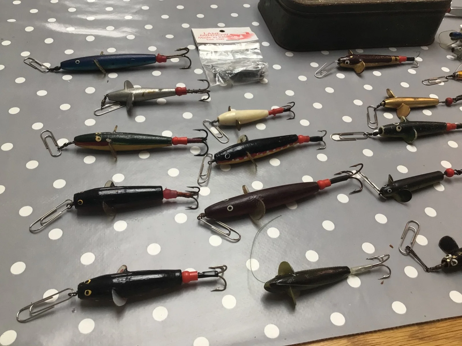 Huge joblot of 39 vintage Devon minnows in a The Hockley minnow box