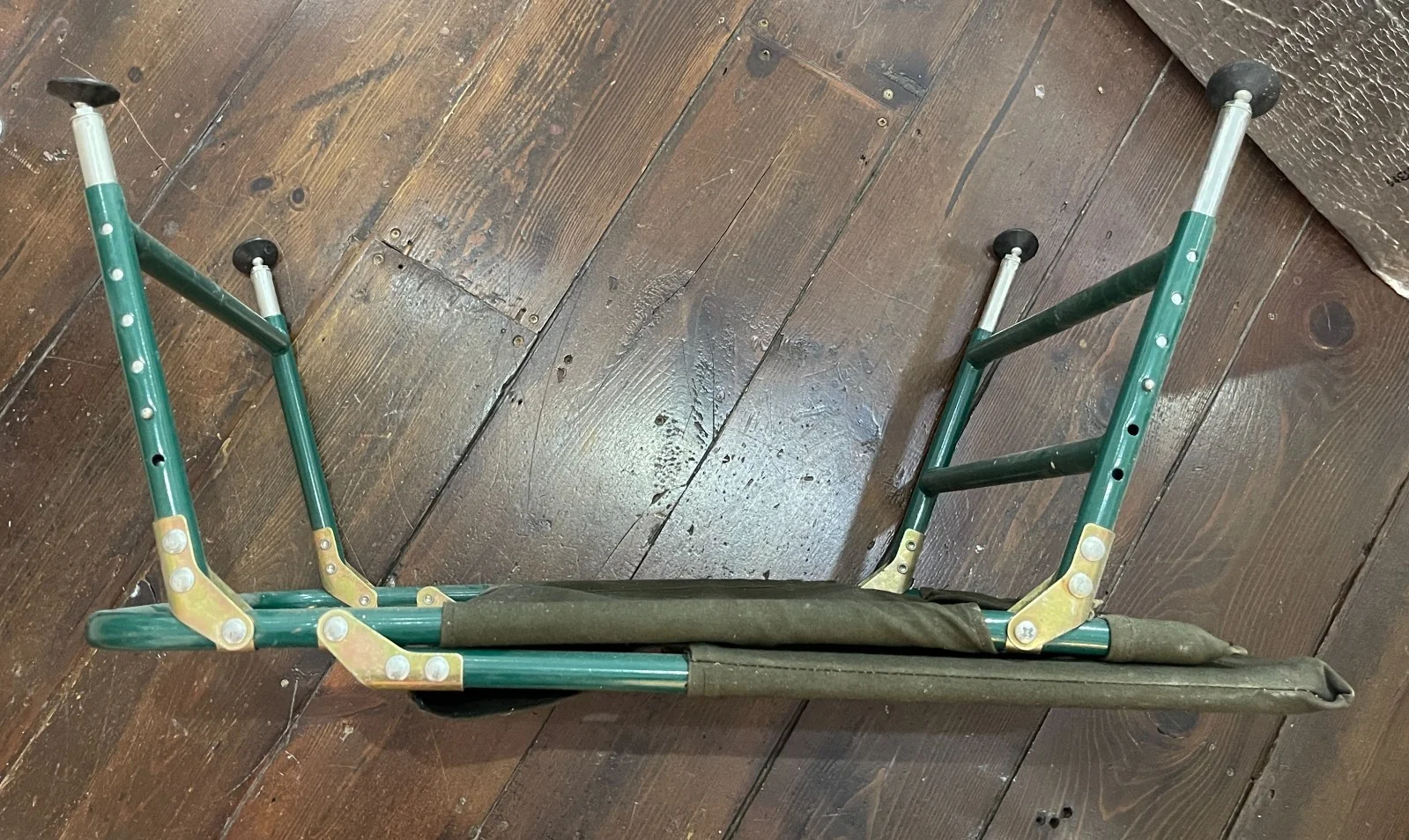 Fishing Chair Adjustable Legs Foldable Lightweight sturdy & Portable Compact Camping chair A lightweight, compact dark racing green chair with height adjustable legsApprox: 68cm back to front . 44cm x 76cm (w x h) fits easily in your gear setup without taking up much space. Weight 38500g Height adjustable legs allow for a stable and level seating experience, even on uneven terrain.Durable dark racing green build: The sturdy metal construction ensures lasting performance, while the dark green green canvas colour complements natural outdoor settings. Perfect for Anglers: Designed with fishing in mind, but versatile enough for camping, picnics, or other outdoor activities.Have listed a similar fishing chair. Bought from new and used for picnics at outdoor opera events. Clearing out man shed of things not being used anymore. Will be listing another. FOR COLLECTION ONLY FROM BS23.