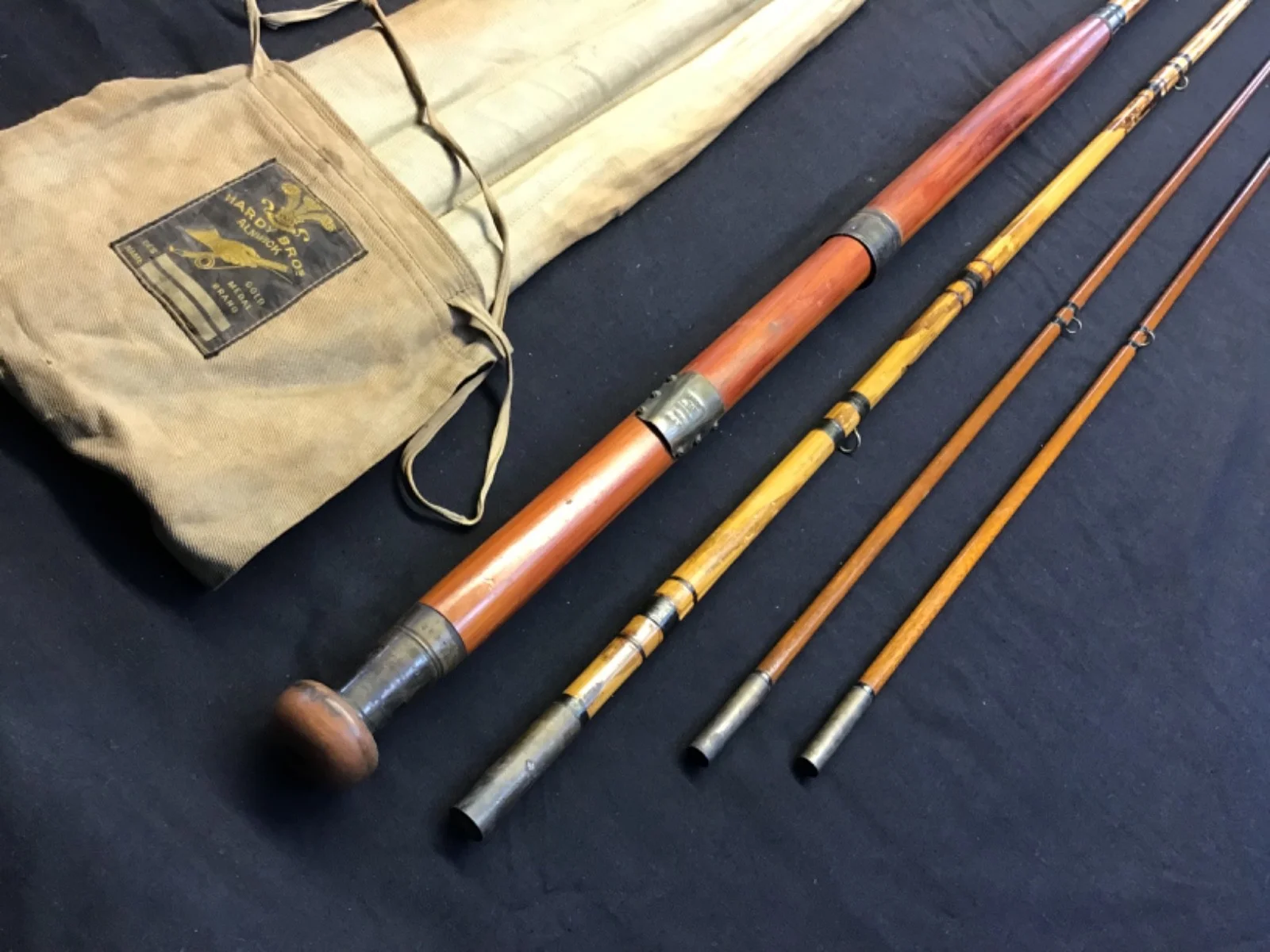Rare early Hardy “Gold Medal” 16ft 3 piece (plus spare tip) bamboo and greenhear