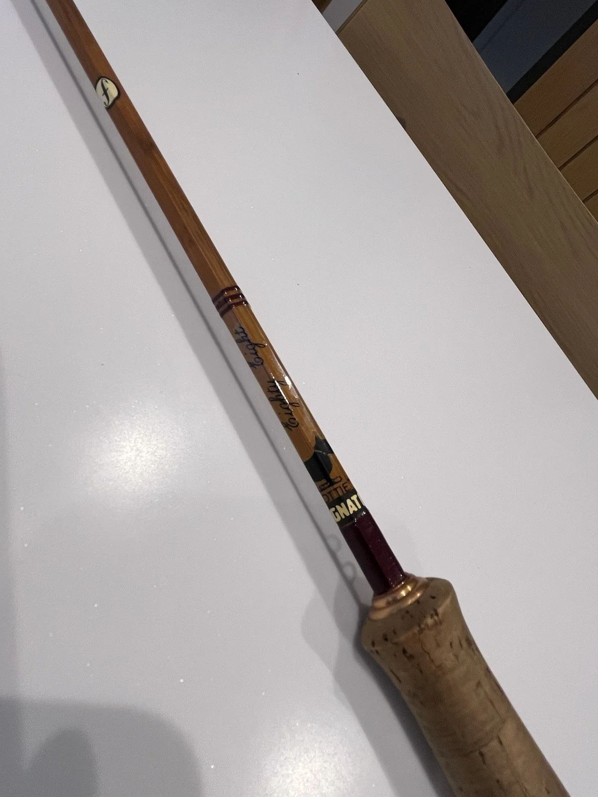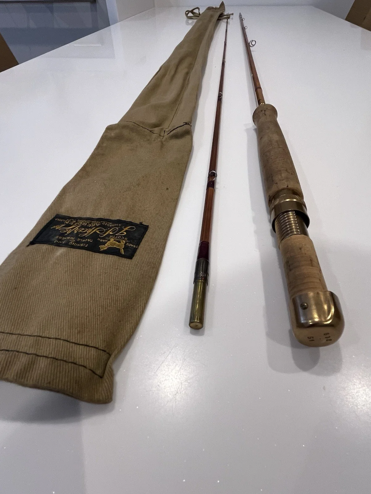 The info near the handle says -IMPREGNATED “SCOTTIE”Eighty Eight#5 ‘ 6I hope this helps! Many thanksThe Sharpes of Aberdeen 'Eighty Eight' 8' 8" Split Cane Fly Fishing Rod is a vintage piece designed for freshwater fishing, specifically targeting trout. Made from cane with a cork handle, this fly fishing rod offers a classic and traditional feel while maintaining a high level of performance. Suitable for both left and right-handed anglers, this unisex rod is a versatile choice for any fishing enthusiast looking to tackle the challenges of fly fishing for trout. Comes with bag.