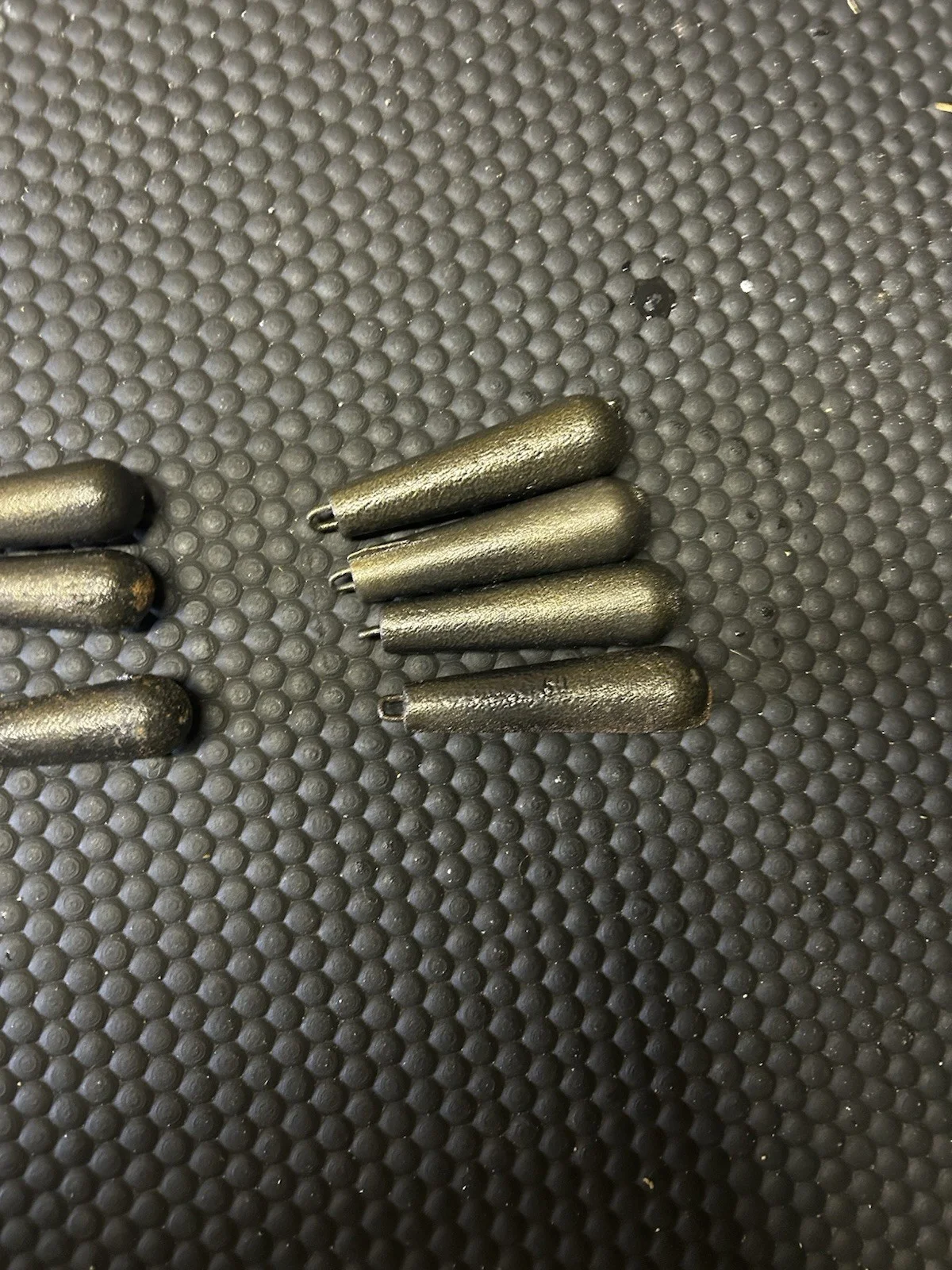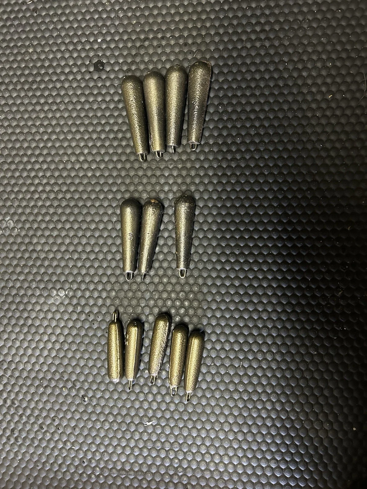 5x 2.5, 3 x 4 and 4 x5 gram fishing weightsUsed