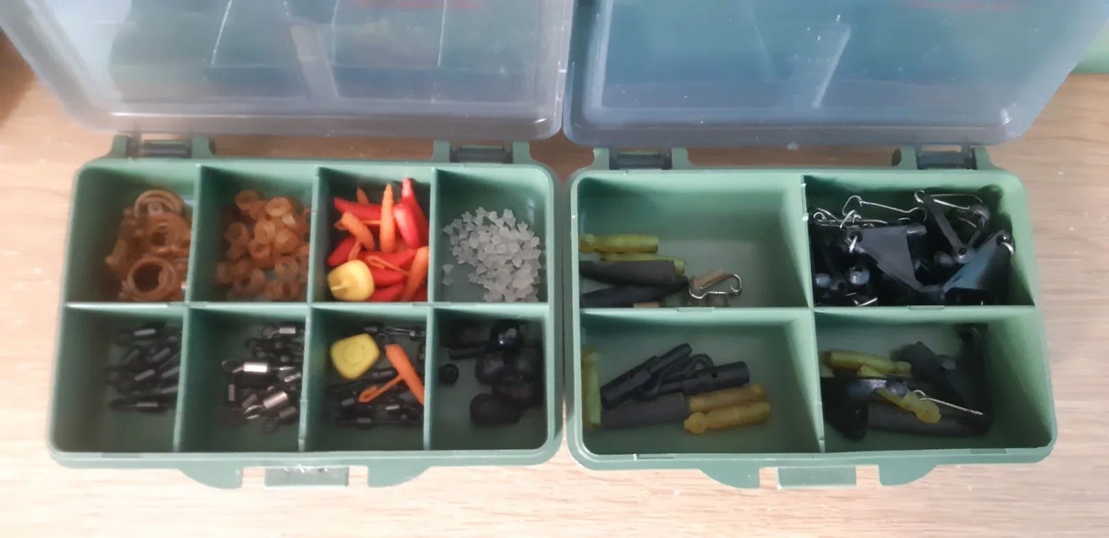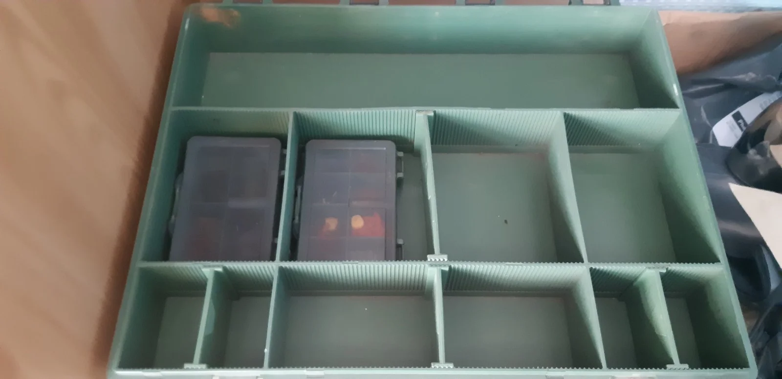 Here for sale we have a carp kinetics joblot of large tacke box 36cm x 28cm 2 rig boxes with 2 inner bits boxes with mixed bits all in full working order and good used condition. Thanks for looking check out my other items.