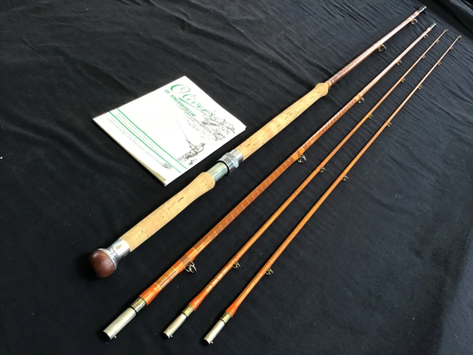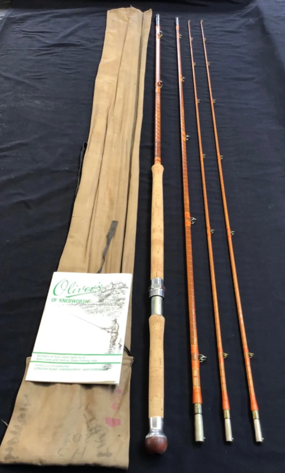 Rare Oliver’s “Salmon Fly ” 14ft 3 pc (+ plus spare tip) split cane Fly Rod+bag