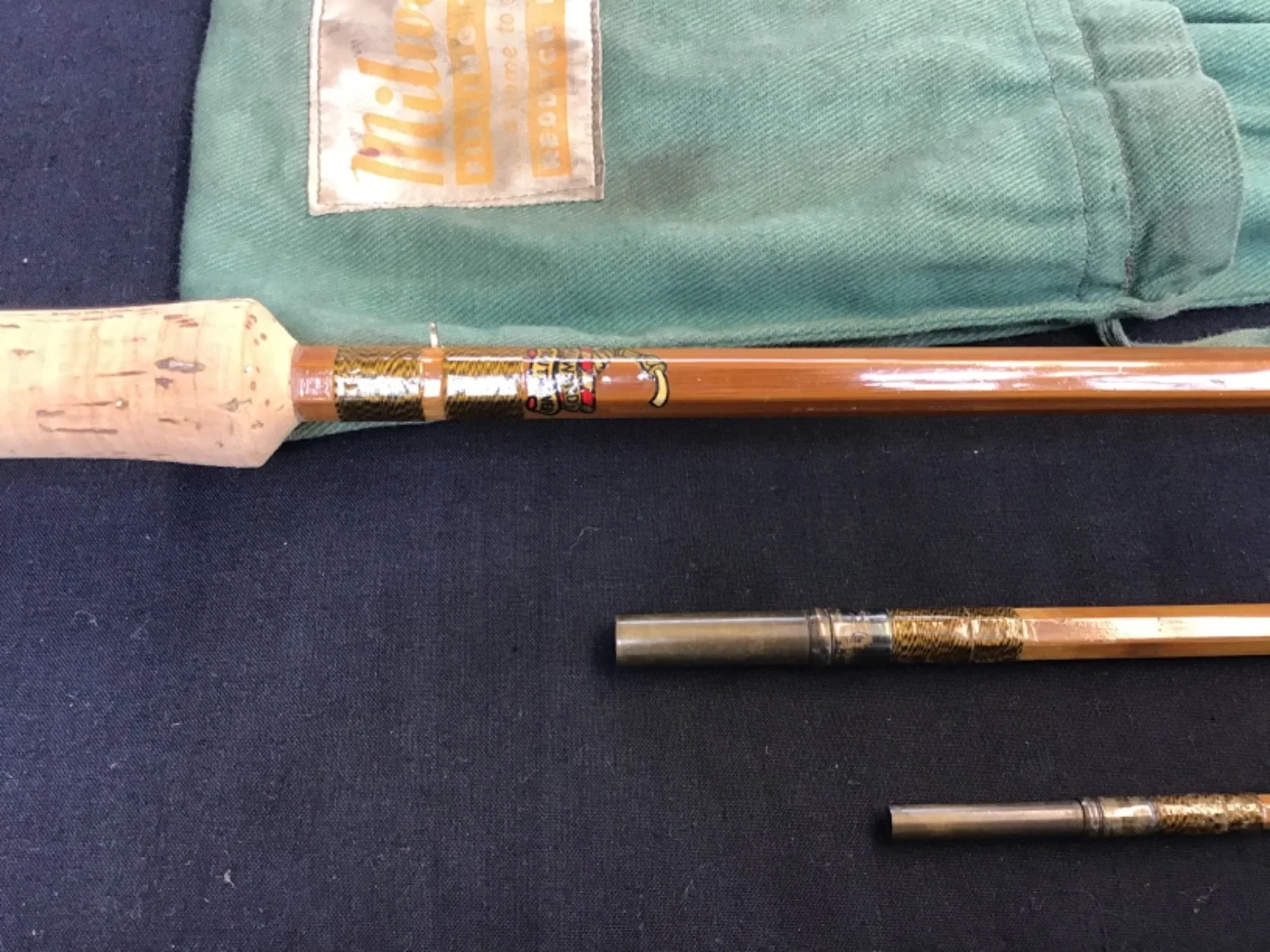 Vintage Milwards “Trout Rover” 9ft 3 piece split cane Fly Rod and bag