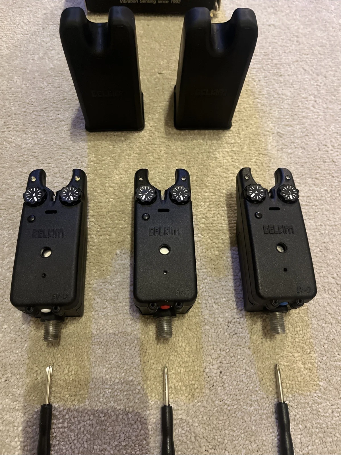 Delkim Ev-D Bite Alarms Blue, Red And White.