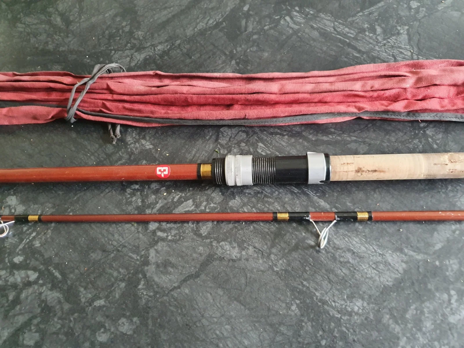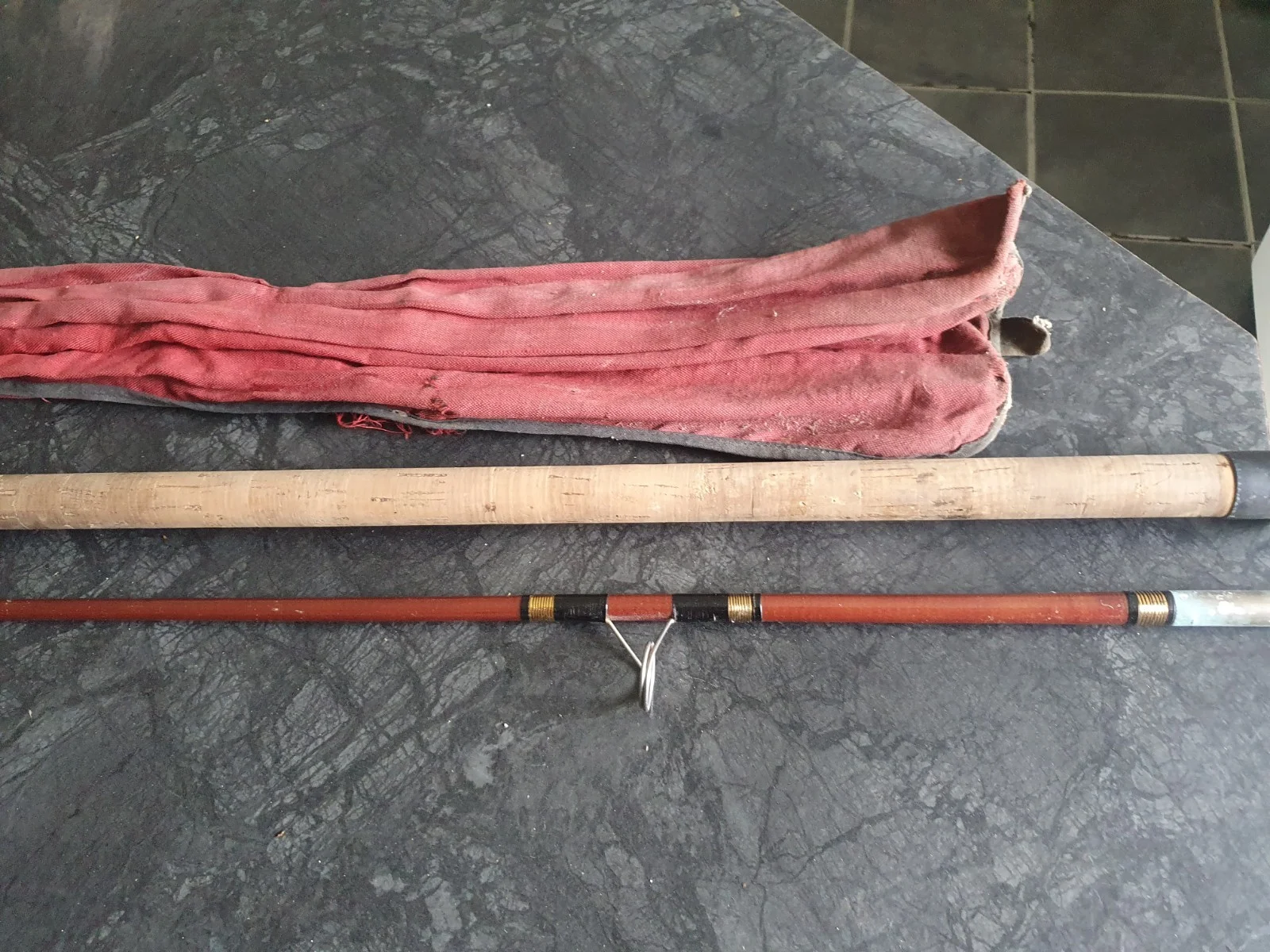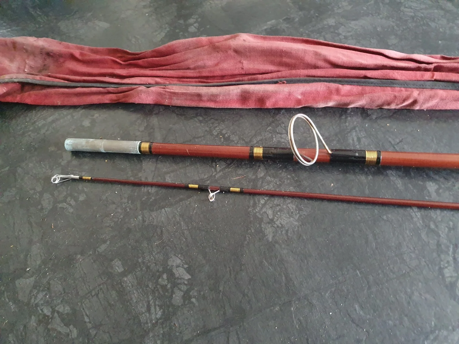 vintage allcock and co split cane 7 ft 2 piece rod with bag