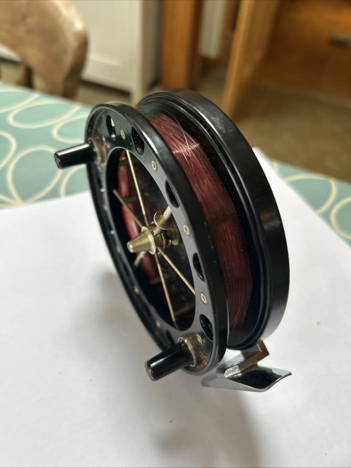 The Match Aerial Fly Fishing Reel is a vintage piece designed specifically for fly fishing enthusiasts. With an interchangeable right/left-handed design, this single-action reel offers a unique gear ratio for a smooth and precise fishing experience. Perfect for those who appreciate the art and skill of fly fishing, this reel is a must-have for any angler looking to enhance their performance on the water.
