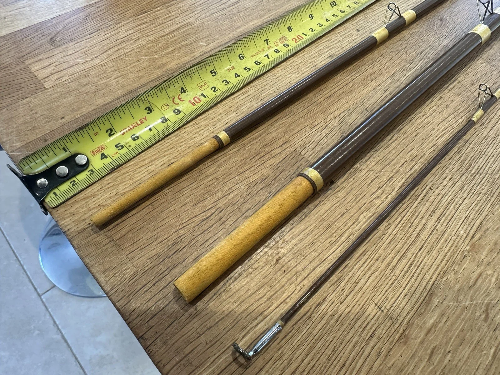 This is a used Clarke (Redditch) composite rod 2.8m - 9'6"ft - comes in 3 sections - in good overallcondition – odd marks and some corrosion on one eyelet (though it is still rigid and strong) - no other significant marking or damage.Hopefully the pictures describe it –- I’ll answer any questions I can but viewing is recommended – I am no expert. Collection and any trial (WR6 – halfway between Hereford and Worcester) is welcome – happy to post with EVRI and but I can deliver locally if that helps.Please check my other listings which include a variety of other working tools and odds and ends – I am happy tocombine to reduce postage cost and arrange shipment anywhere - thanks for looking.