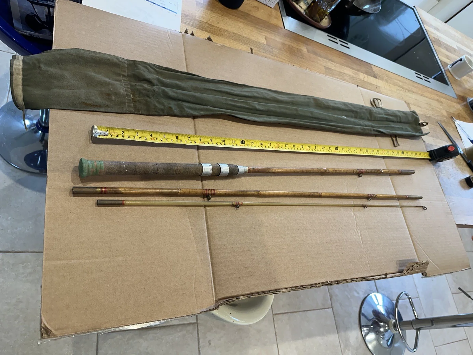 Vintage Milbro Cane / Glass 9FT 3-Piece Fishing Rod - Good Undamaged Condition