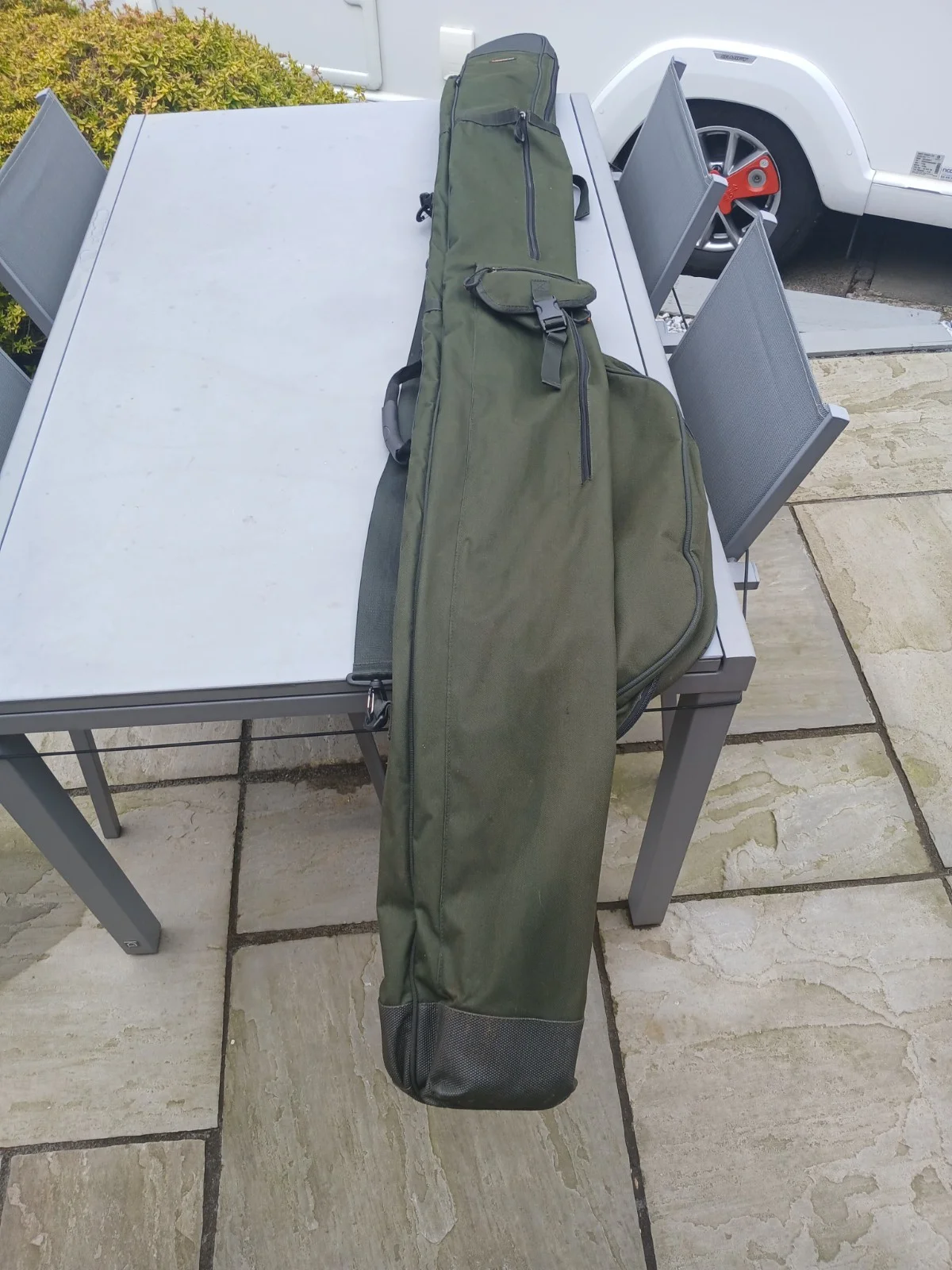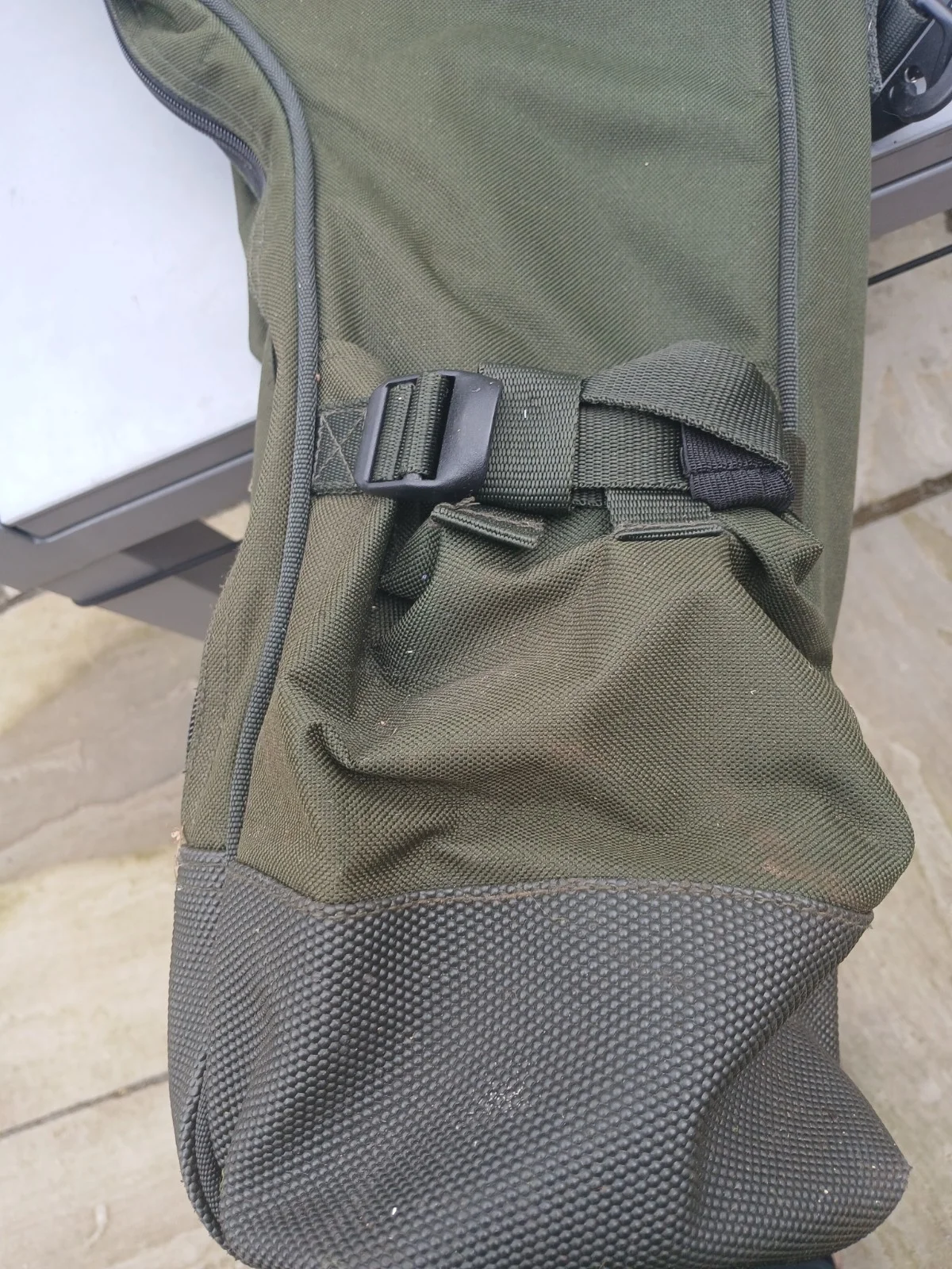 very good condition ready rod holdall all clips,zips,pockets, base,straps in good order please see photos of actual item a couple very light scuffs see last photos just wanted to point them out but nothing really, item will be sent folded for postage.
