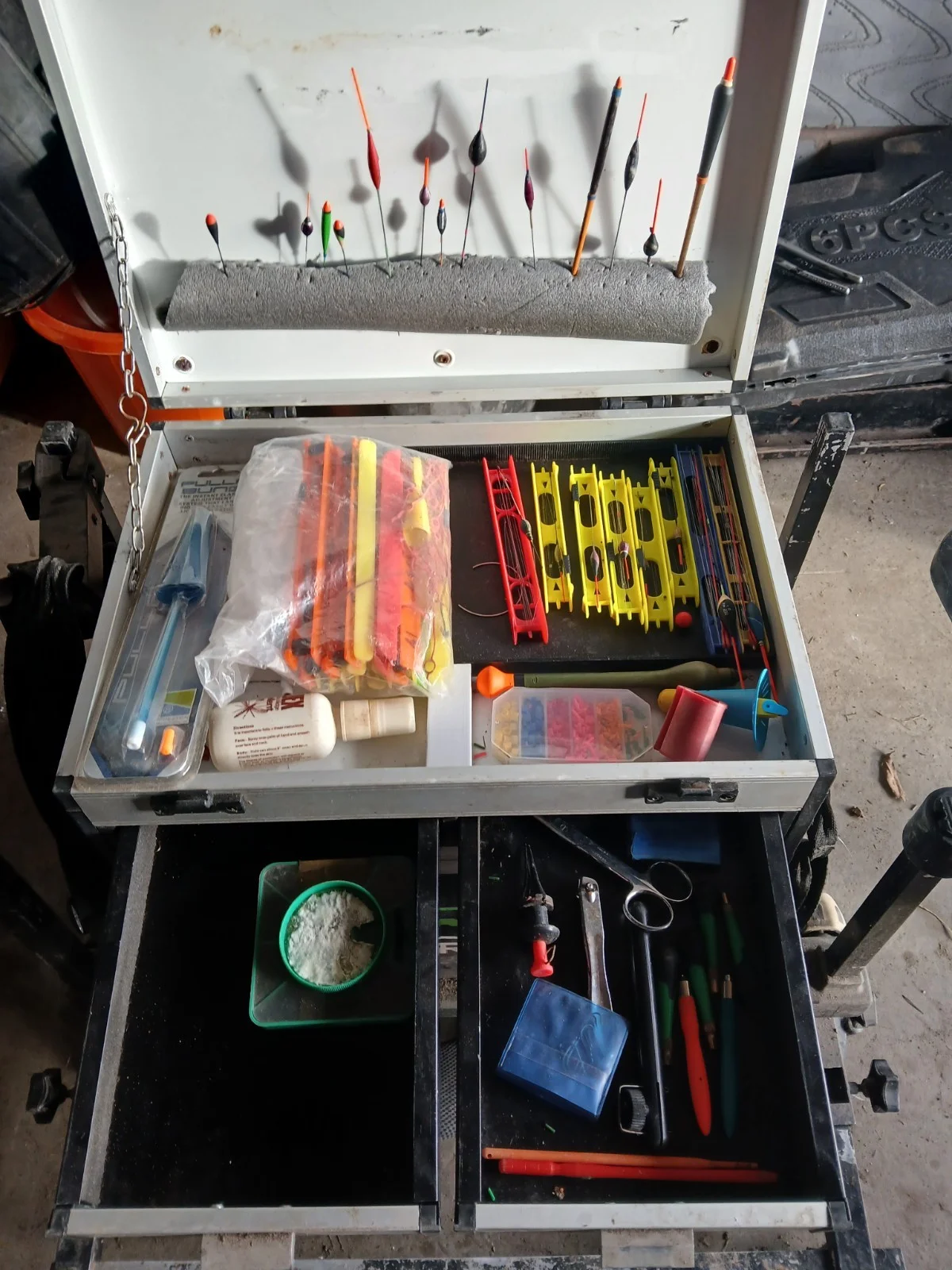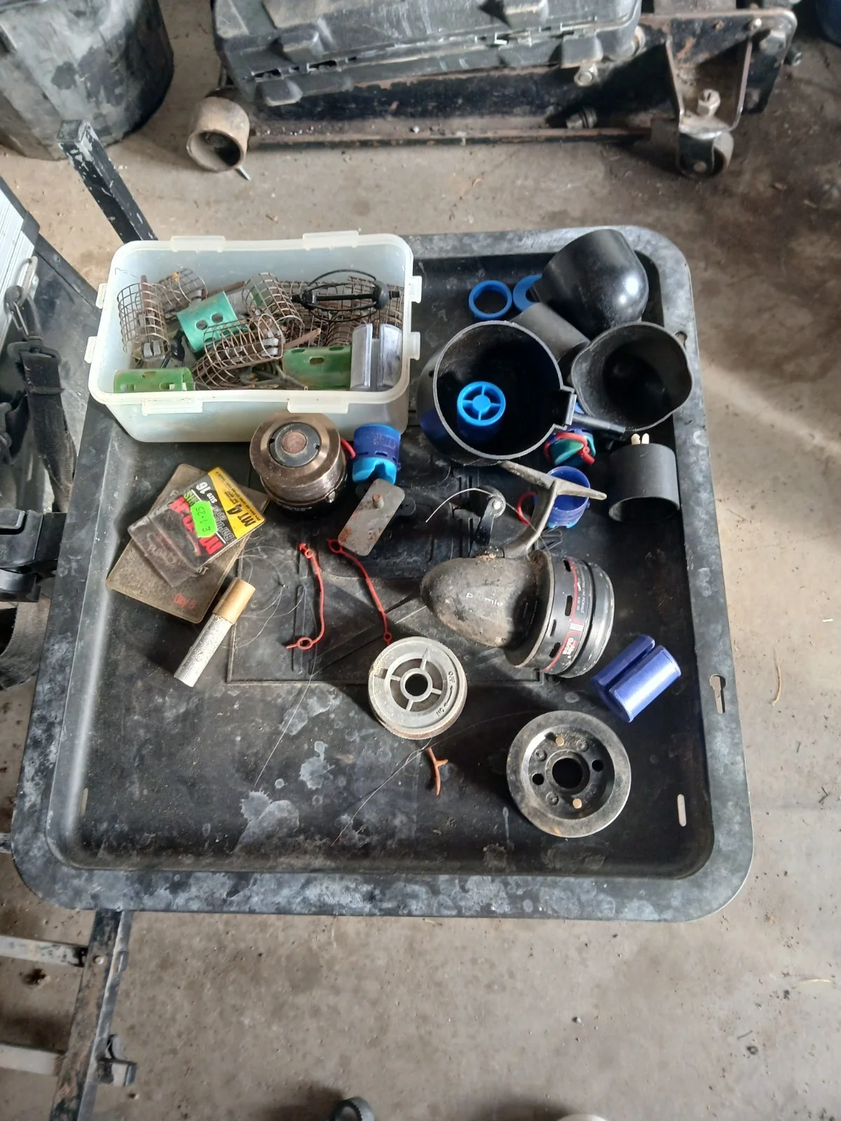 maver adjustable leg seatbox .side bait tray ..garolino keep nets ..rod rest ..catapults .abu garcia reel ect ..