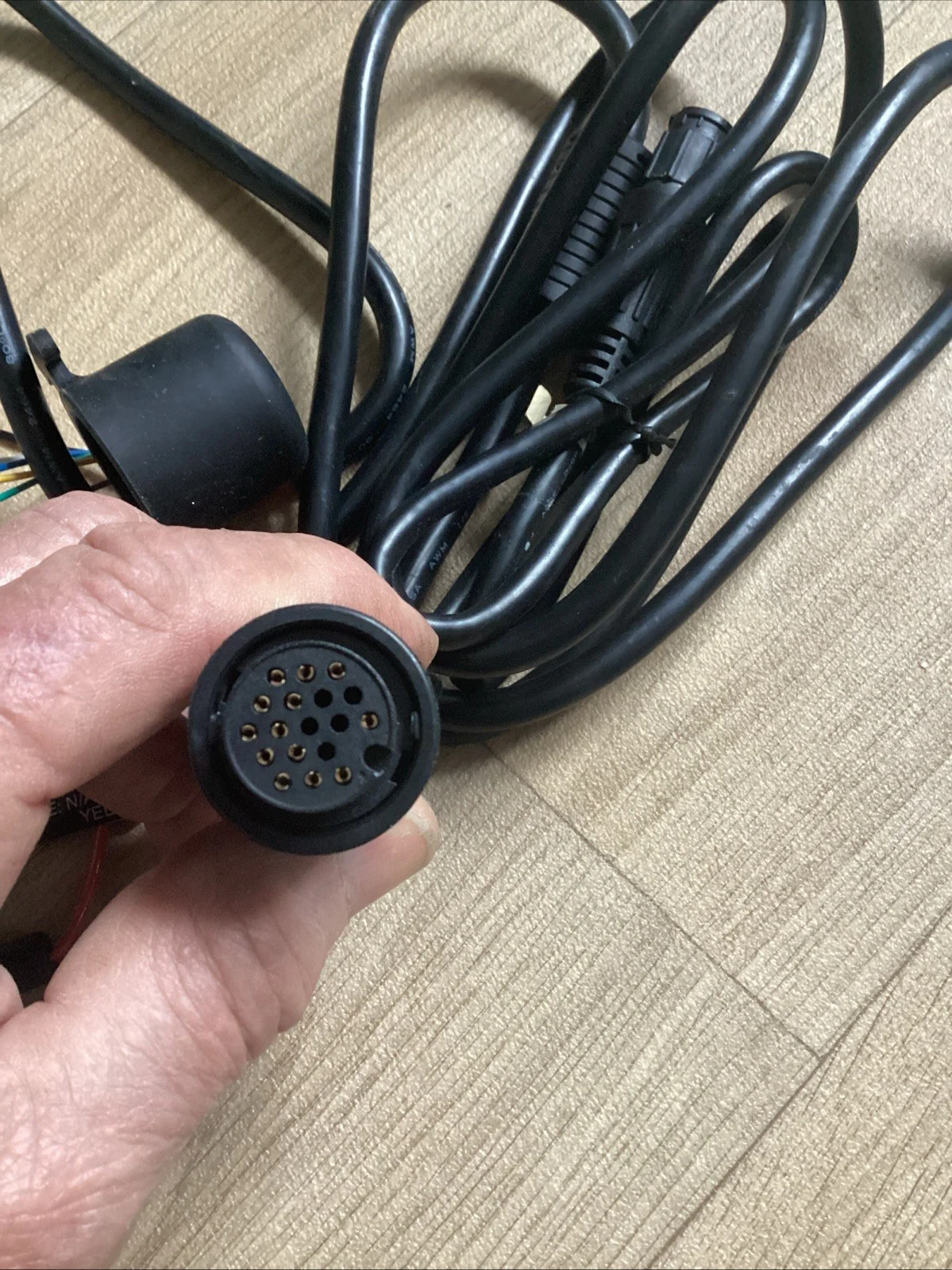 The cable has only been used at home for setting up the fish finder, never been used on or fitted to a boat. As such in very good condition 7 wire cable please check the photos of plugs for configuration of connections It fits several different modelsApproximately 2 meters in length