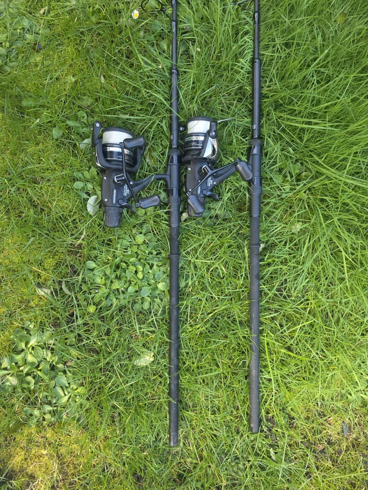 The Nash Dwarf 10ft 3.5lb Carp Fishing Rods X2 are designed specifically for freshwater fishing, targeting carp. The Shimano St Rb 6000 Baitrunner Reel X2, in black colour, provide smooth and reliable performance for this purpose. With the Nash brand known for quality fishing gear, anglers can expect a durable and effective setup for their carp fishing adventures. everything is in excellent condition and fully working