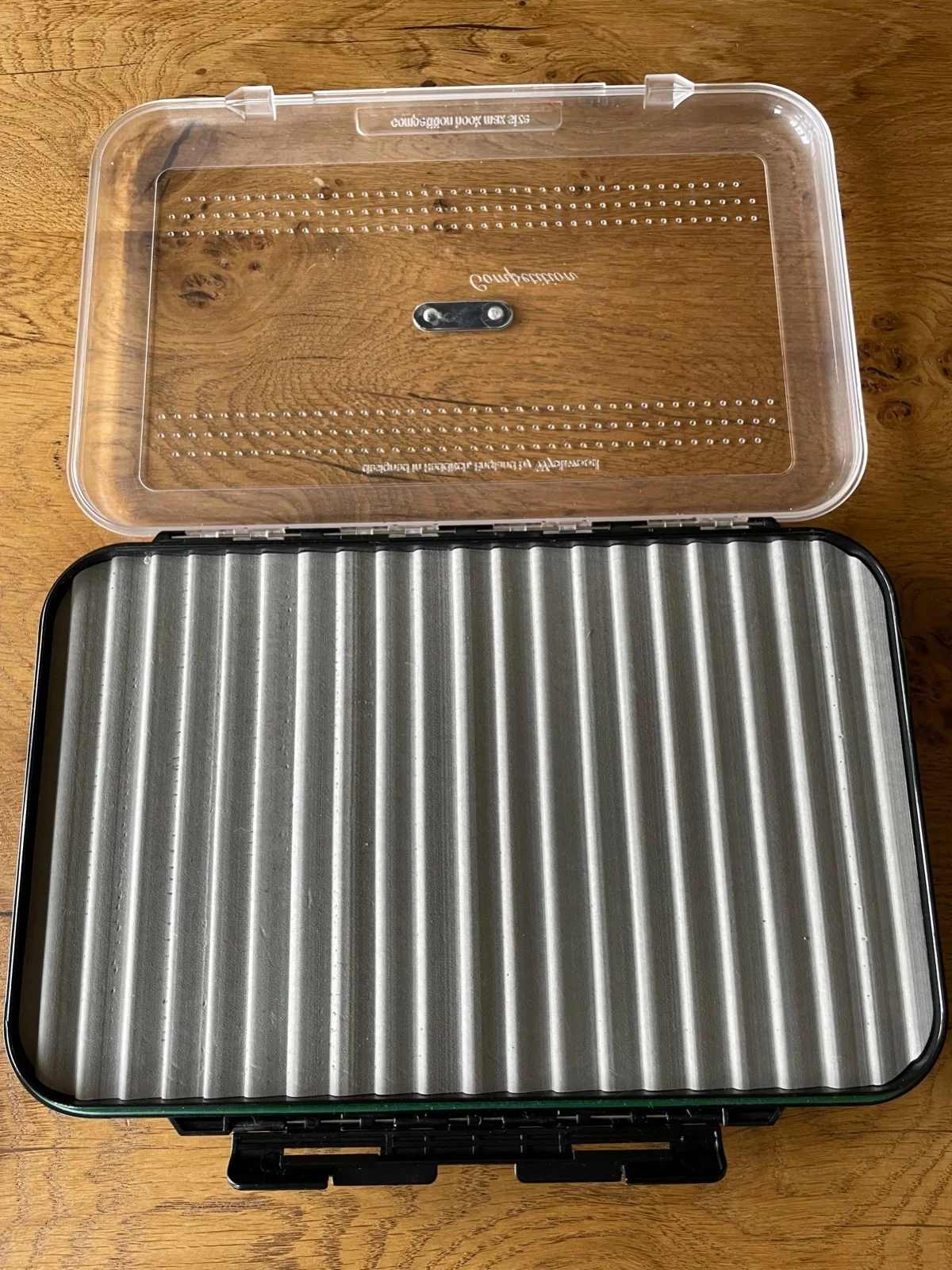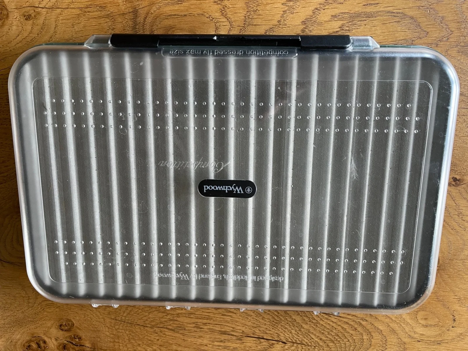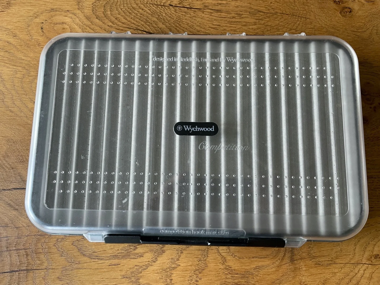 A Wychwood double ripple foam Competition Fly Box. The fly box is in very good condition. The dimensions are 300mm x 200mm x 40mm.