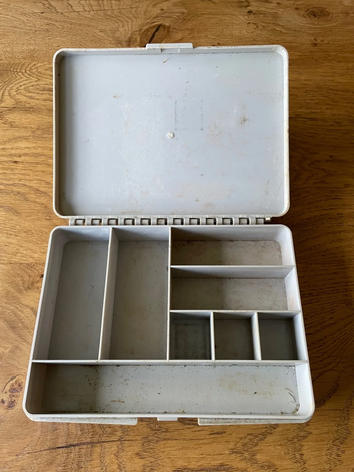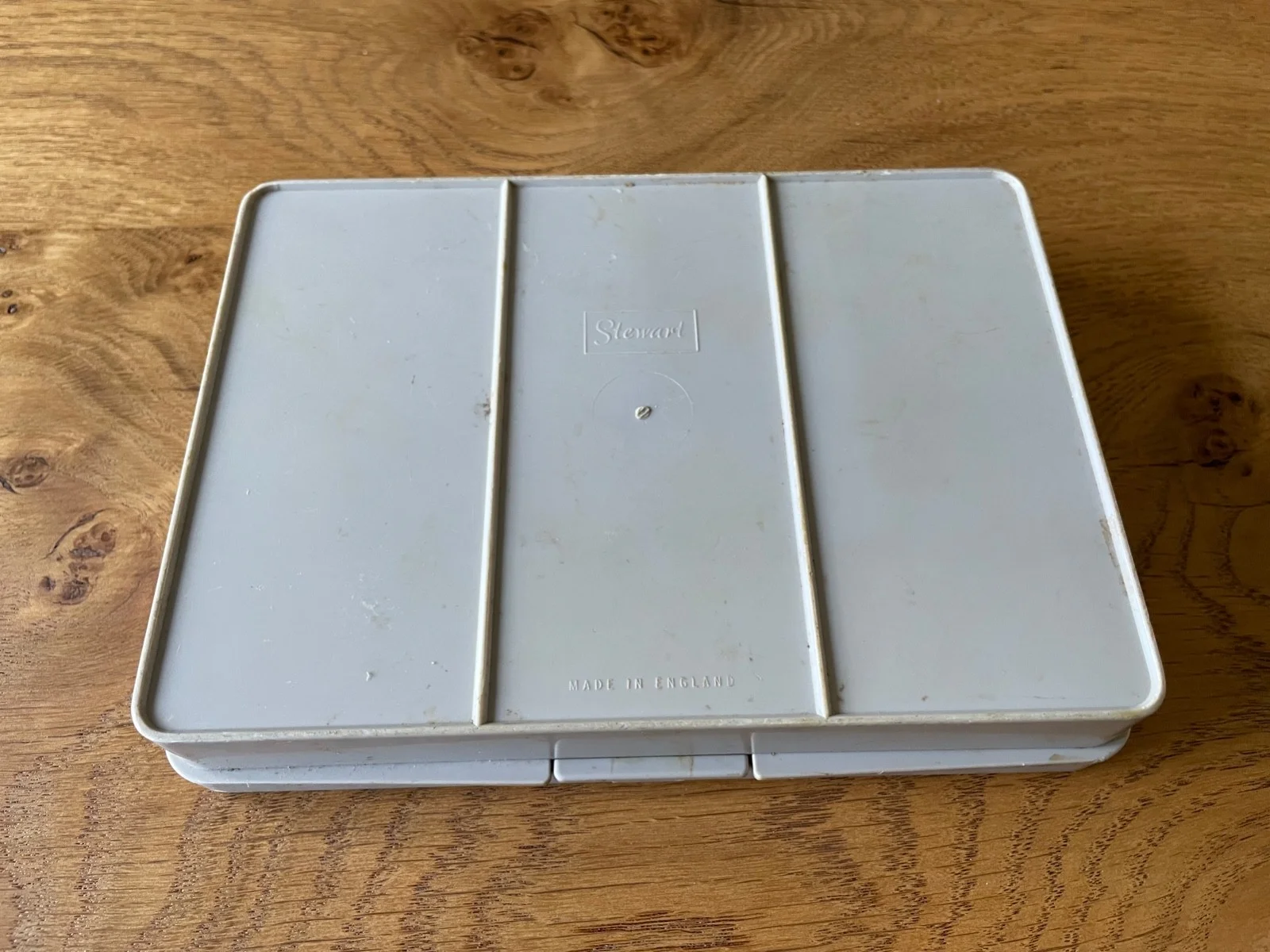 A Stewart Tackle Box in good, sound condition. The internal dimensions are 7" x 5" x 1.25" and it has 8 compartments.